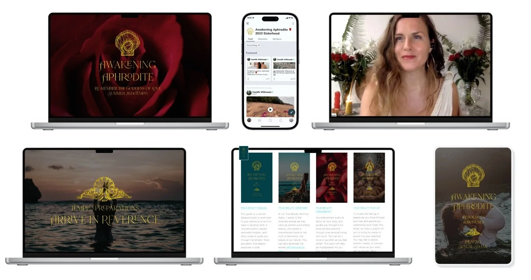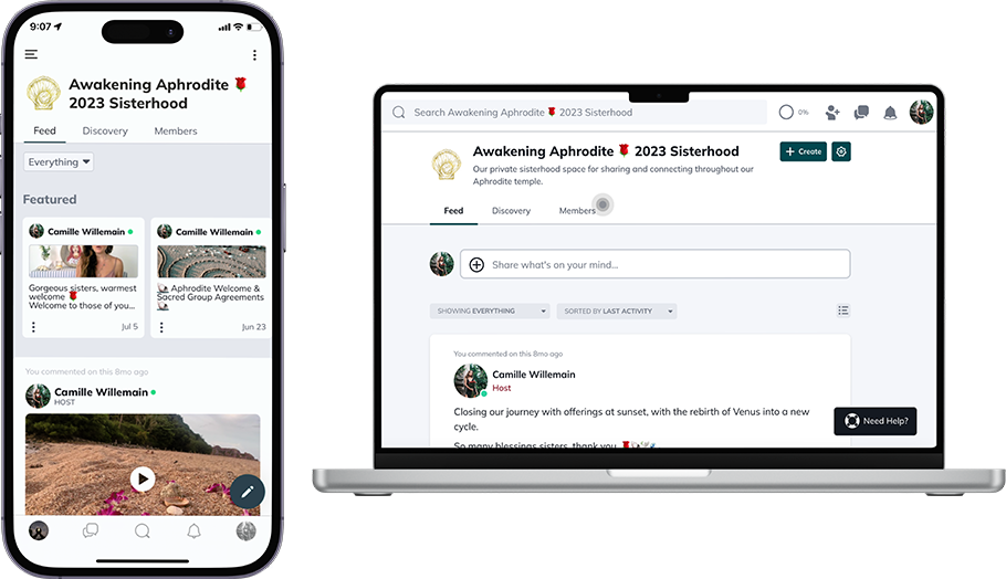 You’ll be held the entire journey in our private women’s sanctuary hosted on Mighty Networks. Lean in to the support of sisterhood, share your journey, witness one another, and feel the webs of connection across the world. Because it’s off social media you can disconnect from the noise and immerse yourself in the temple of Aphrodite instead. Because our temple already happened LIVE this Summer, you’ll have many posts to already explore.