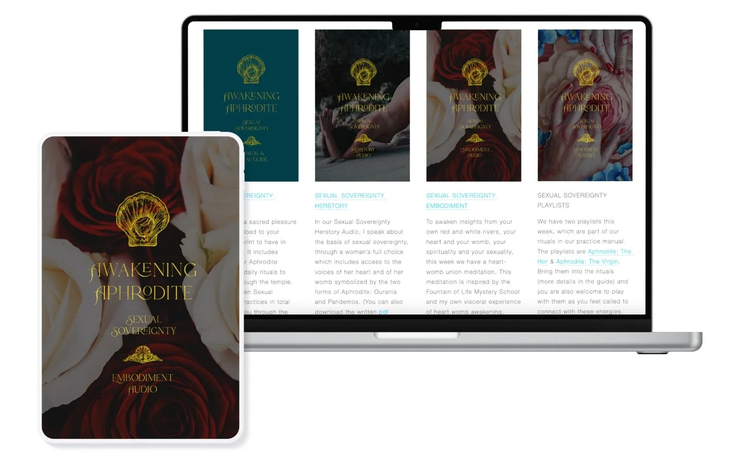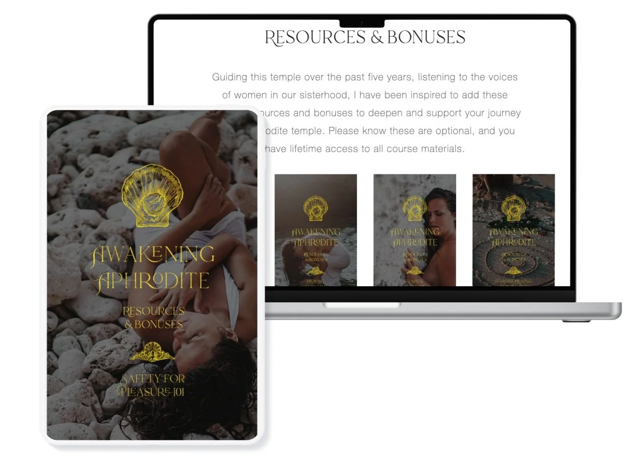 Create an exquisite space for your own Aphrodite journey to come alive with safety and sacredness with our bonus Arrive in Reverence Module. This module includes guidance for setting up your Aphrodite altar, creating an intention setting ceremony, setting the space to receive this journey, and a powerful opening audio herstory for weaving the wisdom of sacred feminine resurrection.